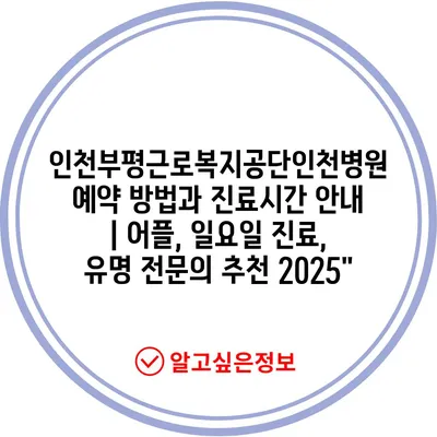 ✅ 인천부평근로복지공단인천병원의 진료시간과 예약 방법을 쉽게 알아보세요.