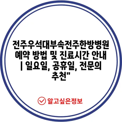 ✅ 전주우석대부속전주한방병원의 예약 과정을 쉽게 알아보세요.