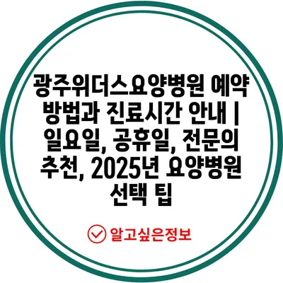 광주위더스요양병원 예약 방법과 진료시간 공지 | 일요일, 공휴일, 전연락 추천, 2025년 요양병원 선택 팁 에 대해 자주 묻는 질문 TOP 5