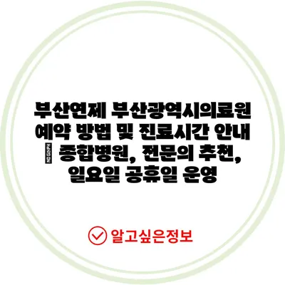 부산연제 부산광역시의료원 예약 방법 및 진료시간 안내 | 종합병원, 전문의 추천, 일요일 공휴일 운영