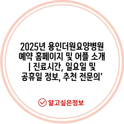 ✅ 용인더원요양병원의 예약 방법과 진료시간을 자세히 알아보세요.