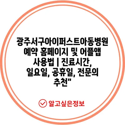 ✅ 광주서구아이퍼스트아동병원의 진료시간 및 예약 정보를 알아보세요!