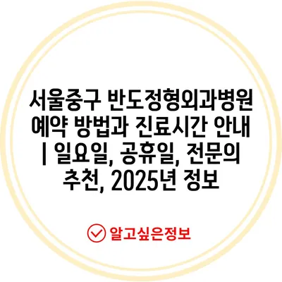서울중구 반도정형외과병원 예약 방법과 진료시간 공지 | 일요일, 공휴일, 전연락 추천, 2025년 정보