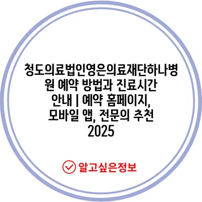 청도의료법인영은의료재단하나병원 예약 방법과 진료시간 공지 | 예약 홈페이지, 모바일 앱, 전연락 추천 2025
