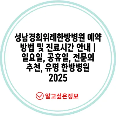 성남경희위례한방병원 예약 방법 및 진료시간 공지 | 일요일, 공휴일, 전연락 추천, 유명 한방병원 2025 에 대해 자주 묻는 질문 TOP 5