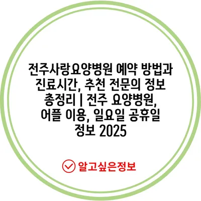전주사랑요양병원 예약 방법과 진료시간, 추천 전연락 정보 총정리 | 전주 요양병원, 어플 이용, 일요일 공휴일 정보 2025 에 대해 자주 묻는 질문 TOP 5