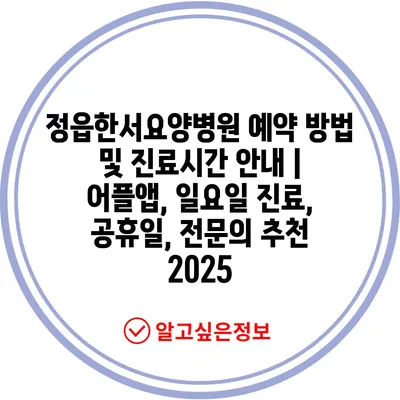 정읍한서요양병원 예약 방법 및 진료시간 공지 | 어플앱, 일요일 진료, 공휴일, 전연락 추천 2025 에 대해 자주 묻는 질문 TOP 5
