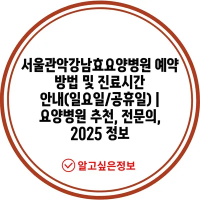 서울관악강남효요양병원 예약 방법 및 진료시간 공지(일요일/공휴일) | 요양병원 추천, 전연락, 2025 정보 에 대해 자주 묻는 질문 TOP 5