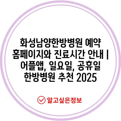 화성남양한방병원 예약 홈페이지와 진료시간 안내 | 어플앱, 일요일, 공휴일 한방병원 추천 2025