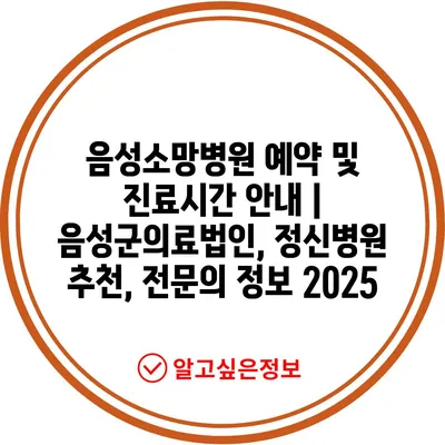 음성소망병원 예약 및 진료시간 공지 | 음성군의료법인, 정신병원 추천, 전연락 정보 2025