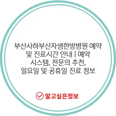 부산사하부산자생한방병원 예약 및 진료시간 공지 | 예약 시스템, 전연락 추천, 일요일 및 공휴일 진료 정보 에 대해 자주 묻는 질문 TOP 5
