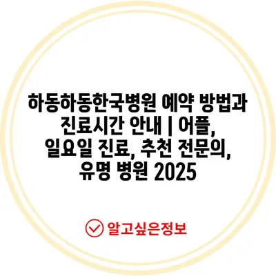 하동하동한국병원 예약 방법과 진료시간 안내 | 어플, 일요일 진료, 추천 전문의, 유명 병원 2025