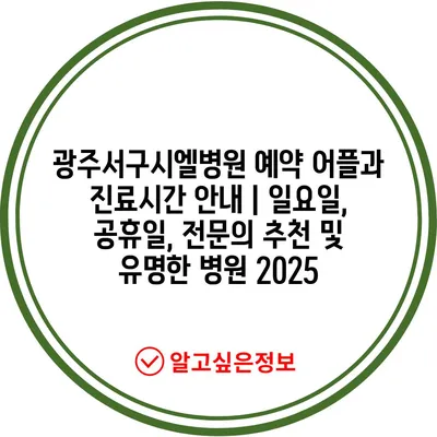 광주서구시엘병원 예약 어플과 진료시간 공지 | 일요일, 공휴일, 전연락 추천 및 유명한 병원 2025 에 대해 자주 묻는 질문 TOP 5