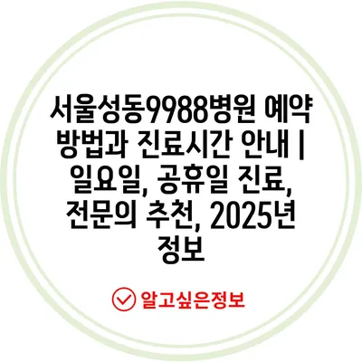 서울성동9988병원 예약 방법과 진료시간 공지 | 일요일, 공휴일 진료, 전연락 추천, 2025년 정보 에 대해 자주 묻는 질문 TOP 5