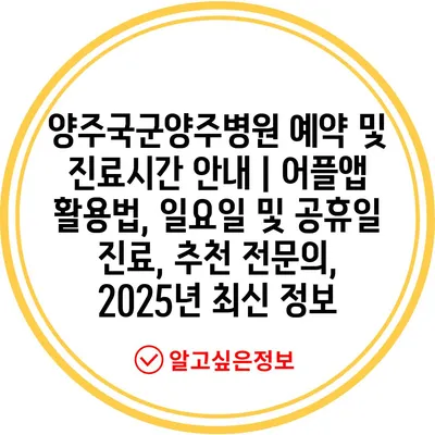 양주국군양주병원 예약 및 진료시간 공지 | 어플앱 활용법, 일요일 및 공휴일 진료, 추천 전연락, 2025년 최신 정보