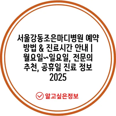 서울강동조은마디병원 예약 방법 & 진료시간 공지 | 월요일~일요일, 전연락 추천, 공휴일 진료 정보 2025 에 대해 자주 묻는 질문 TOP 5