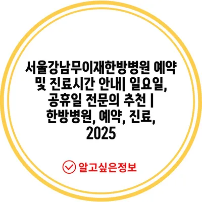서울강남무이재한방병원 예약 및 진료시간 안내| 일요일, 공휴일 전문의 추천 | 한방병원, 예약, 진료, 2025에 대한 정보를 소개합니다.