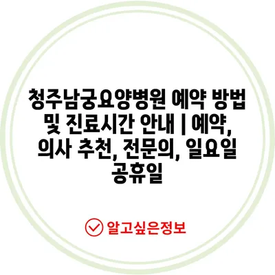 ✅ 청주남궁요양병원의 예약 방법과 진료시간을 알아보세요.