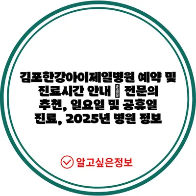 김포한강아이제일병원 예약 및 진료시간 공지 | 전연락 추천, 일요일 및 공휴일 진료, 2025년 병원 정보 에 대해 자주 묻는 질문 TOP 5