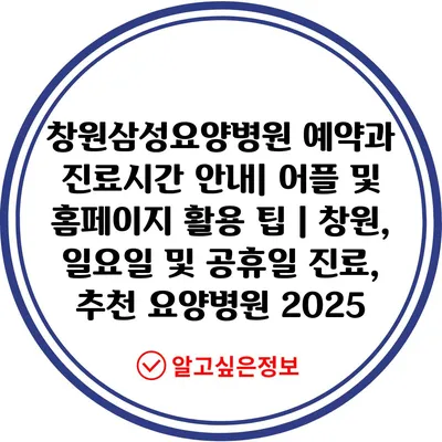창원삼성요양병원 예약과 진료시간 공지| 어플 및 홈페이지 활용 팁 | 창원, 일요일 및 공휴일 진료, 추천 요양병원 2025 에 대해 자주 묻는 질문 TOP 5