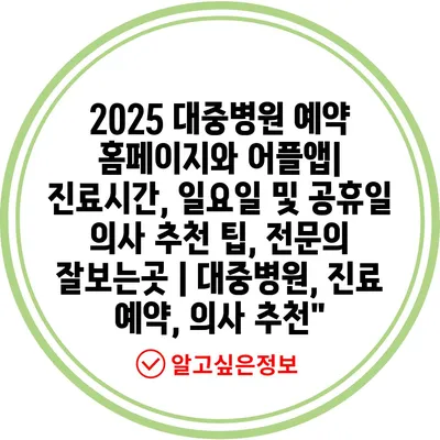 2025 대중병원 예약 홈페이지와 어플앱| 진료시간, 일요일 및 공휴일 의사 추천 팁, 전연락 잘보는곳 | 대중병원, 진료 예약, 의사 추천에 대해 자주 묻는 질문 TOP 5