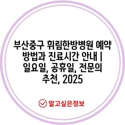 부산중구 휘림한방병원 예약 방법과 진료시간 공지 | 일요일, 공휴일, 전연락 추천, 2025 에 대해 자주 묻는 질문 TOP 5