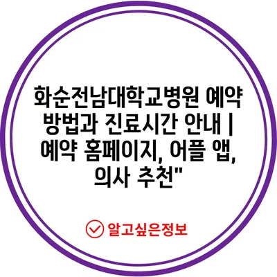 ✅ 화순전남대학교병원 예약 방법과 진료시간을 자세히 알아보세요.