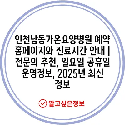 인천남동가온요양병원 예약 홈페이지와 진료시간 공지 | 전연락 추천, 일요일 공휴일 운영정보, 2025년 최신 정보에 대해 자주 묻는 질문 TOP 5