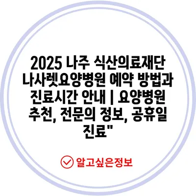2025 나주 식산의료재단 나사렛요양병원 예약 방법과 진료시간 공지 | 요양병원 추천, 전연락 정보, 공휴일 진료” 에 대해 자주 묻는 질문 TOP 5