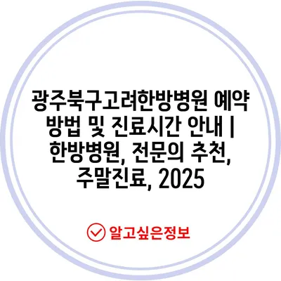 광주북구고려한방병원 예약 방법 및 진료시간 공지 | 한방병원, 전연락 추천, 주말진료, 2025 에 대해 자주 묻는 질문 TOP 5
