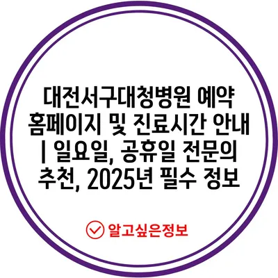 대전서구대청병원 예약 홈페이지 및 진료시간 공지 | 일요일, 공휴일 전연락 추천, 2025년 필수 정보
