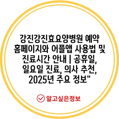강진강진효요양병원 예약 홈페이지와 어플앱 사용법 및 진료시간 공지 | 공휴일, 일요일 진료, 의사 추천, 2025년 주요 정보
