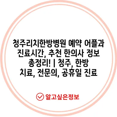 ✅ 청주리치한방병원의 예약 방법과 진료시간을 알아보세요!