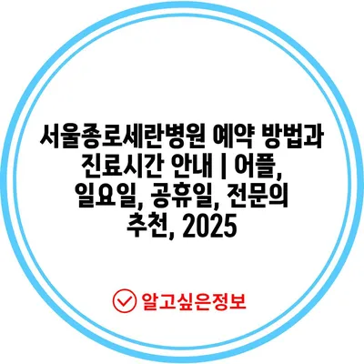 서울종로세란병원 예약 방법과 진료시간 공지 | 어플, 일요일, 공휴일, 전연락 추천, 2025 에 대해 자주 묻는 질문 TOP 5