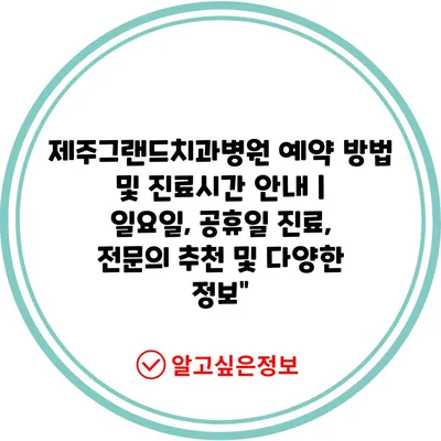 제주그랜드치과병원 예약 방법 및 진료시간 공지 | 일요일, 공휴일 진료, 전연락 추천 및 다양한 정보