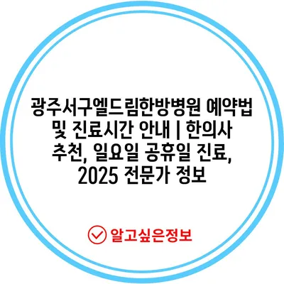 광주서구엘드림한방병원 예약법 및 진료시간 공지 | 한의사 추천, 일요일 공휴일 진료, 2025 전문가 정보 에 대해 자주 묻는 질문 TOP 5