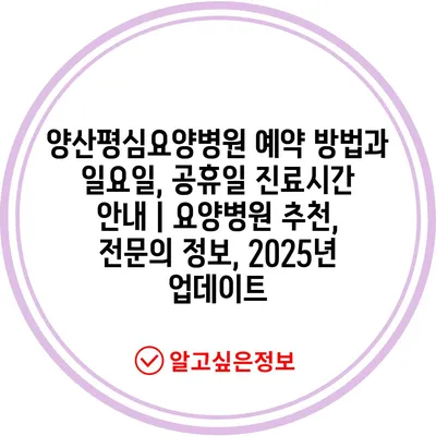 양산평심요양병원 예약 방법과 일요일, 공휴일 진료시간 공지 | 요양병원 추천, 전연락 정보, 2025년 업데이트 에 대해 자주 묻는 질문 TOP 5
