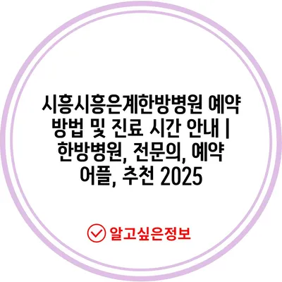 시흥시흥은계한방병원 예약 방법 및 진료 시간 안내 | 한방병원, 전문의, 예약 어플, 추천 2025