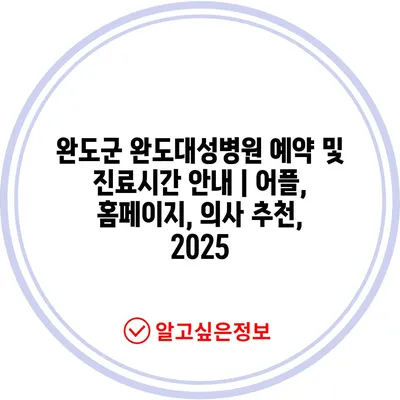 완도군 완도대성병원 예약 및 진료시간 공지 | 어플, 홈페이지, 의사 추천, 2025 에 대해 자주 묻는 질문 TOP 5