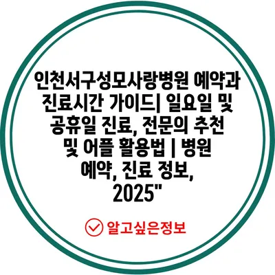 인천서구성모사랑병원 예약과 진료시간 설명서| 일요일 및 공휴일 진료, 전연락 추천 및 어플 활용법 | 병원 예약, 진료 정보, 2025