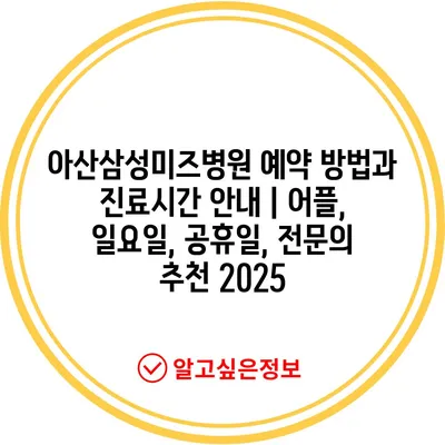 아산삼성미즈병원 예약 방법과 진료시간 공지 | 어플, 일요일, 공휴일, 전연락 추천 2025에 대해 알아보겠습니다.