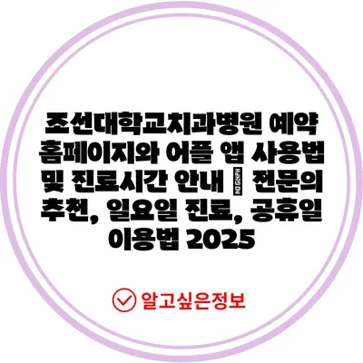 조선대학교치과병원 예약 홈페이지와 어플 앱 사용법 및 진료시간 공지 | 전연락 추천, 일요일 진료, 공휴일 이용법 2025 에 대해 자주 묻는 질문 TOP 5