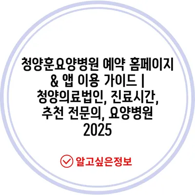✅ 청양훈요양병원 예약 방법을 자세히 알아보세요.