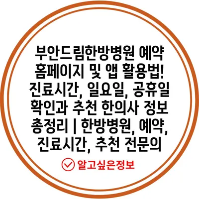부안드림한방병원 예약 홈페이지 및 앱 활용법! 진료시간, 일요일, 공휴일 확인과 추천 한의사 정보 총정리 | 한방병원, 예약, 진료시간, 추천 전연락 에 대해 자주 묻는 질문 TOP 5