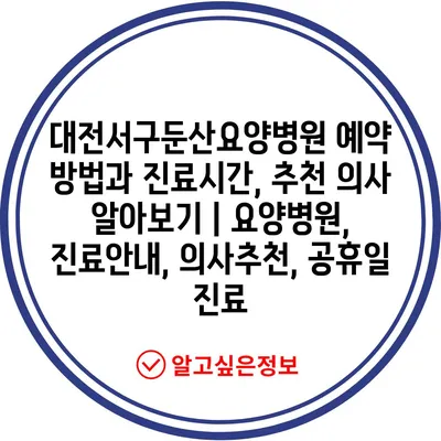✅ 대전서구둔산요양병원의 예약 방법과 절차를 알아보세요.