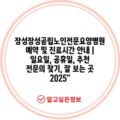 장성장성공립노인전문요양병원 예약 및 진료시간 공지 | 일요일, 공휴일, 추천 전연락 찾기, 잘 보는 곳 2025