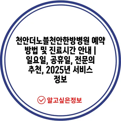 천안더노블천안한방병원 예약 방법 및 진료시간 공지 | 일요일, 공휴일, 전연락 추천, 2025년 서비스 정보 에 대해 자주 묻는 질문 TOP 5