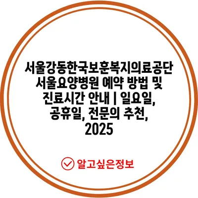 서울강동한국보훈복지의료공단 서울요양병원 예약 방법 및 진료시간 공지 | 일요일, 공휴일, 전연락 추천, 2025