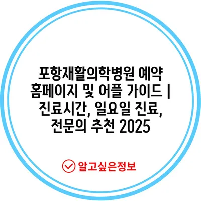포항재활의학병원 예약 홈페이지 및 어플 가이드 | 진료시간, 일요일 진료, 전문의 추천 2025