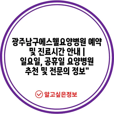 광주남구에스웰요양병원 예약 및 진료시간 공지 | 일요일, 공휴일 요양병원 추천 및 전연락 정보